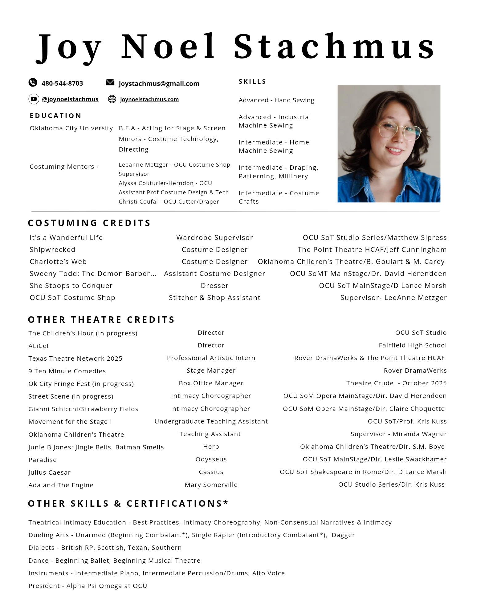Stitcher & Assistant, Ok City U Costume Shop – 30-40 in-house shows per year, plus professional contracts