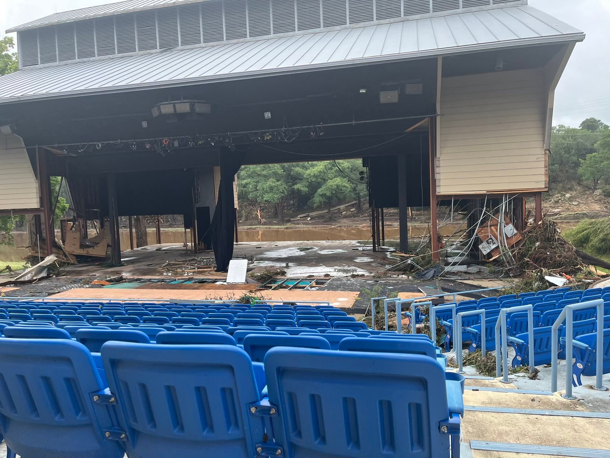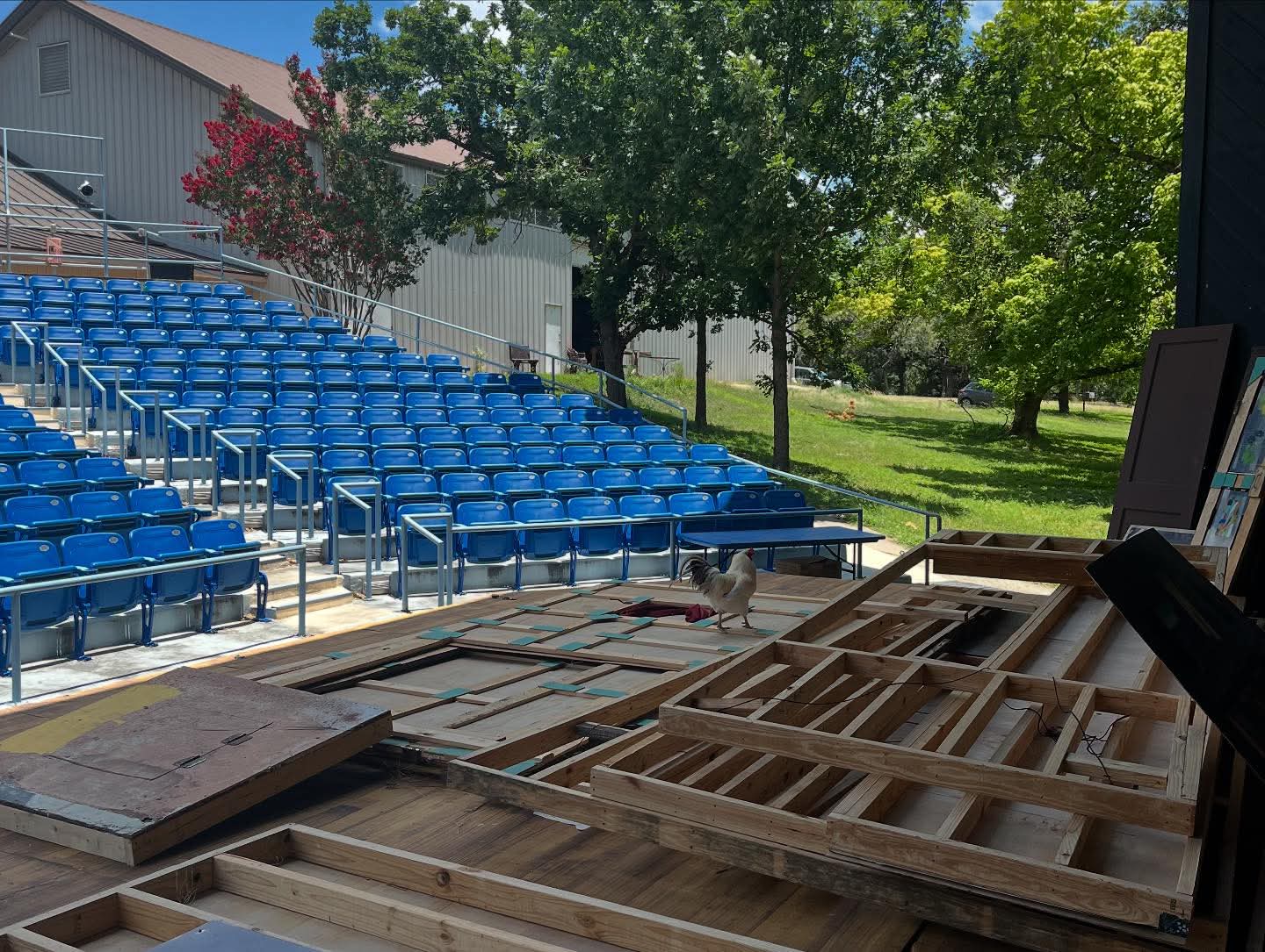 July 15th – Our work here has now transitioned to disaster abatement. I’ve spent the majority of these last 10 days in this lobby – scraping, removing walls, bleaching. The progress we have made is incredible, and I have learned that theatre work sometimes means doing whatever needs to be done. Tomorrow, we shift gears and start work elsewhere – assisting another area theatre with getting their show mounted.